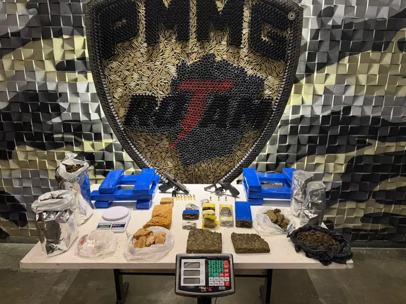 No Distrito Industrial Jatobá, região do Barreiro, em Belo Horizonte, a Polícia Militar de Minas Gerais, (PMMG), por meio do Batalhão de Rondas Táticas Metropolitanas (ROTAM), apreendeu 14 barras de maconha, três barras de crack, uma pistola Cal. 9mm,15 munições 9mm, um revólver Cal. 38, quatro munições Cal. 38, duas barras de skunk, dois pacotes de maconha plantada, duas porções de skunk, sete porções de maconha, uma porção de 1kg de crack, uma porção de 300g de cocaína, dois quilos de cocaína. Um menor foi apreendido. A operação foi registrada nesse domingo e foi resultado de diversas diligências com apoio do serviço de Inteligência.