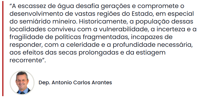 O requerimento que possibilitou a realização da audiência pública é de autoria do deputado Antonio Carlos Arantes (PL). Nele, ele reforça a “gestão diligente” da atual direção da Cedec-MG, que possibilitou a construção de um modelo de governança colaborativa e integrada capaz de transformar o semiárido mineiro.